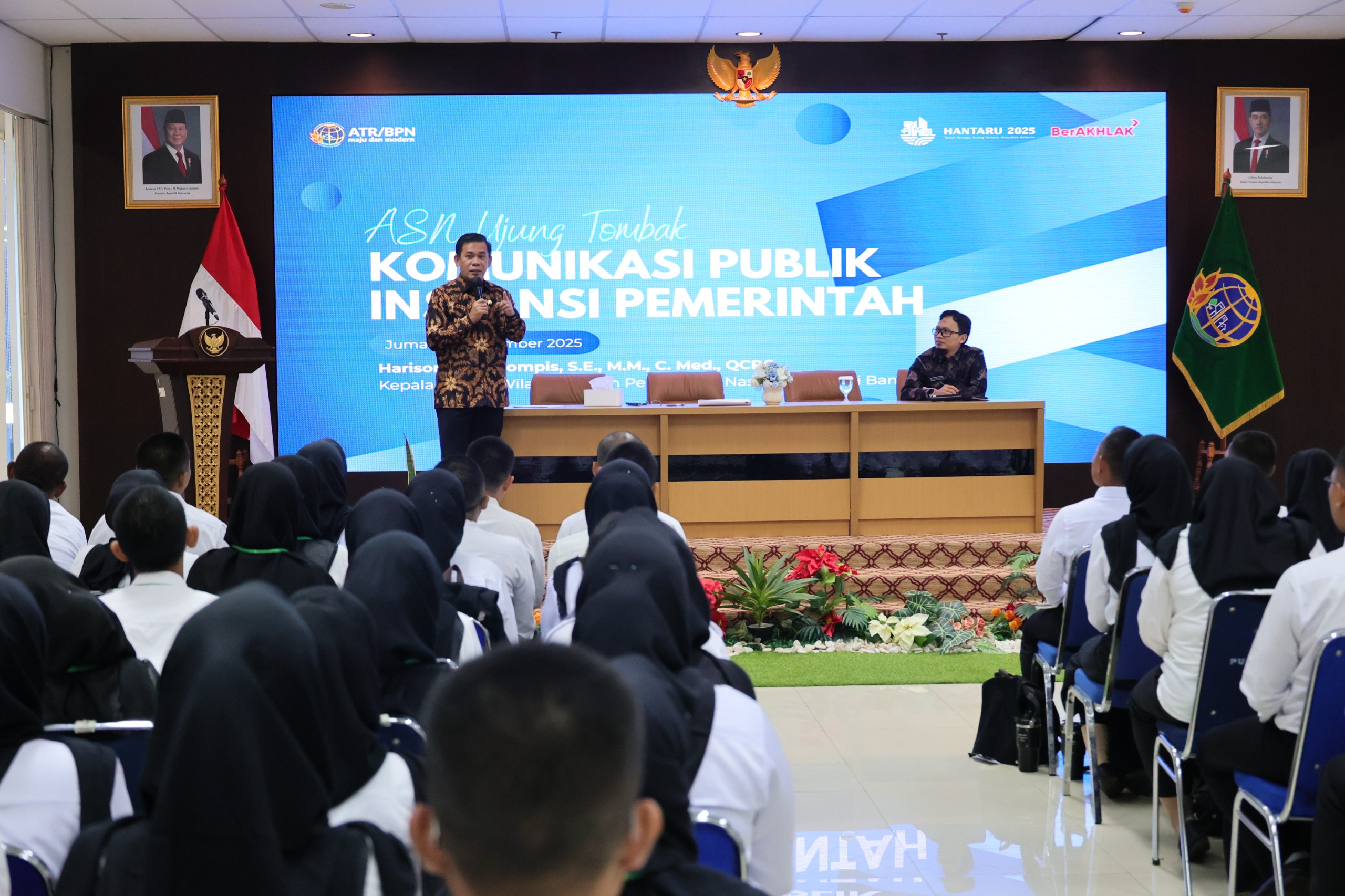 “Komunikasi bukan hanya tugas Humas, tapi tanggung jawab semua ASN. Sejak menjadi bagian dari ASN, Teman-teman telah terikat oleh etika profesi yang berlandaskan pada nilai-nilai yang dijunjung oleh kementerian,” tegas Harison Mocodompis, di Badan Pengembangan Sumber Daya Manusia (BPSDM) Kementerian ATR/BPN, Cikeas, Bogor, Jumat, 7 November 2025.
