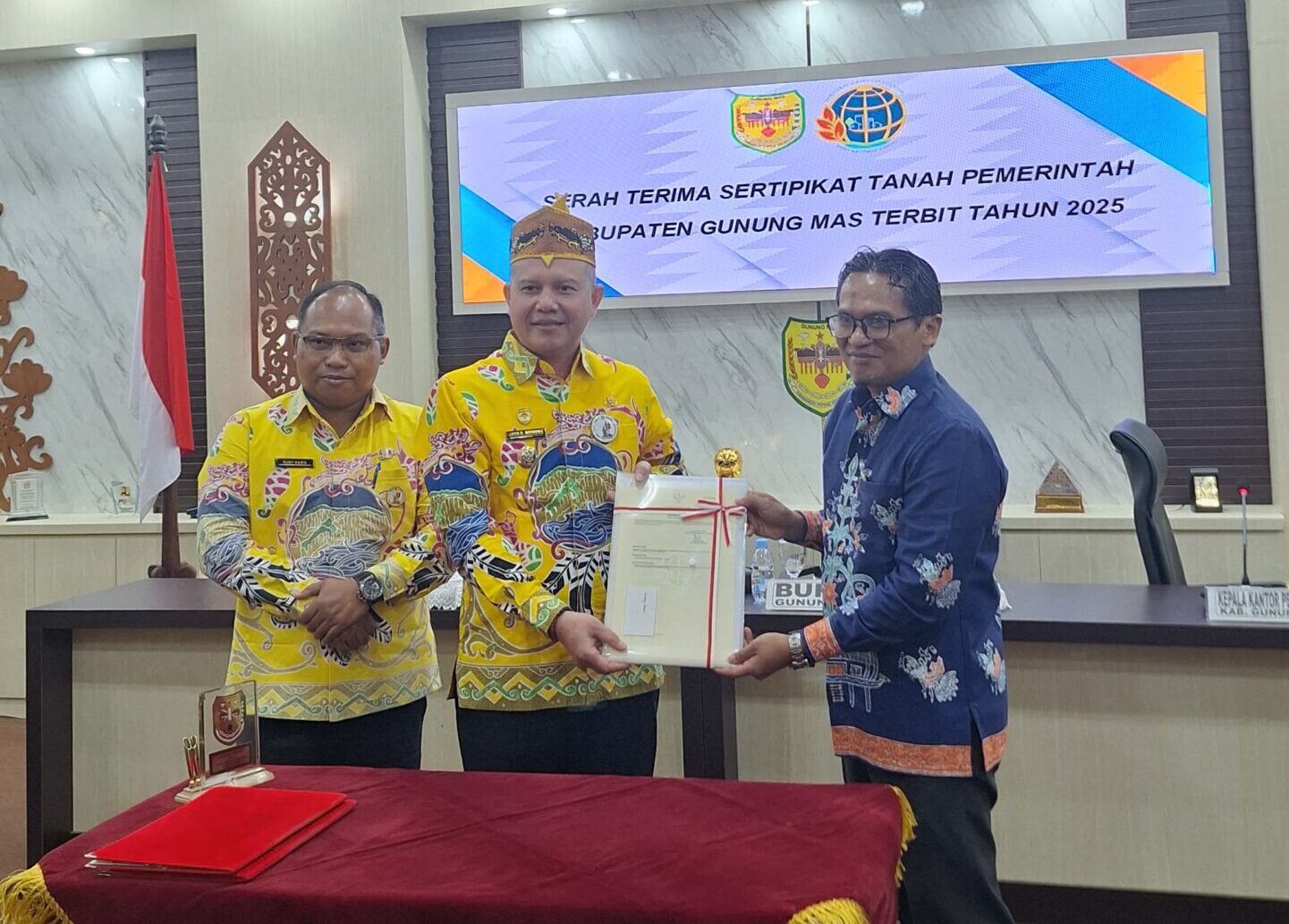 Sementara itu, Kepala Kantor Pertanahan Kabupaten Gunung Mas Halilintar menyebut, ada 21 sertifikat tanah aset pemda yang diserahkan hari ini.