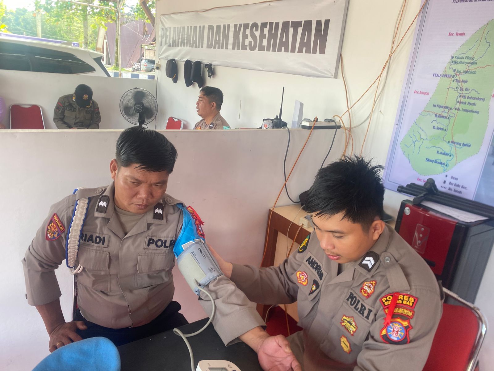Kegiatan yang dimulai tepat pukul 08.00 WIB tersebut dilaksanakan oleh Briptu Andreas. Satu per satu personel yang tengah menjalankan tugas pengamanan mendapatkan pemeriksaan intensif, meliputi pengecekan tekanan darah (tensi) hingga konsultasi kesehatan ringan untuk mendeteksi dini potensi gangguan kelelahan akibat intensitas kerja yang tinggi di lapangan.