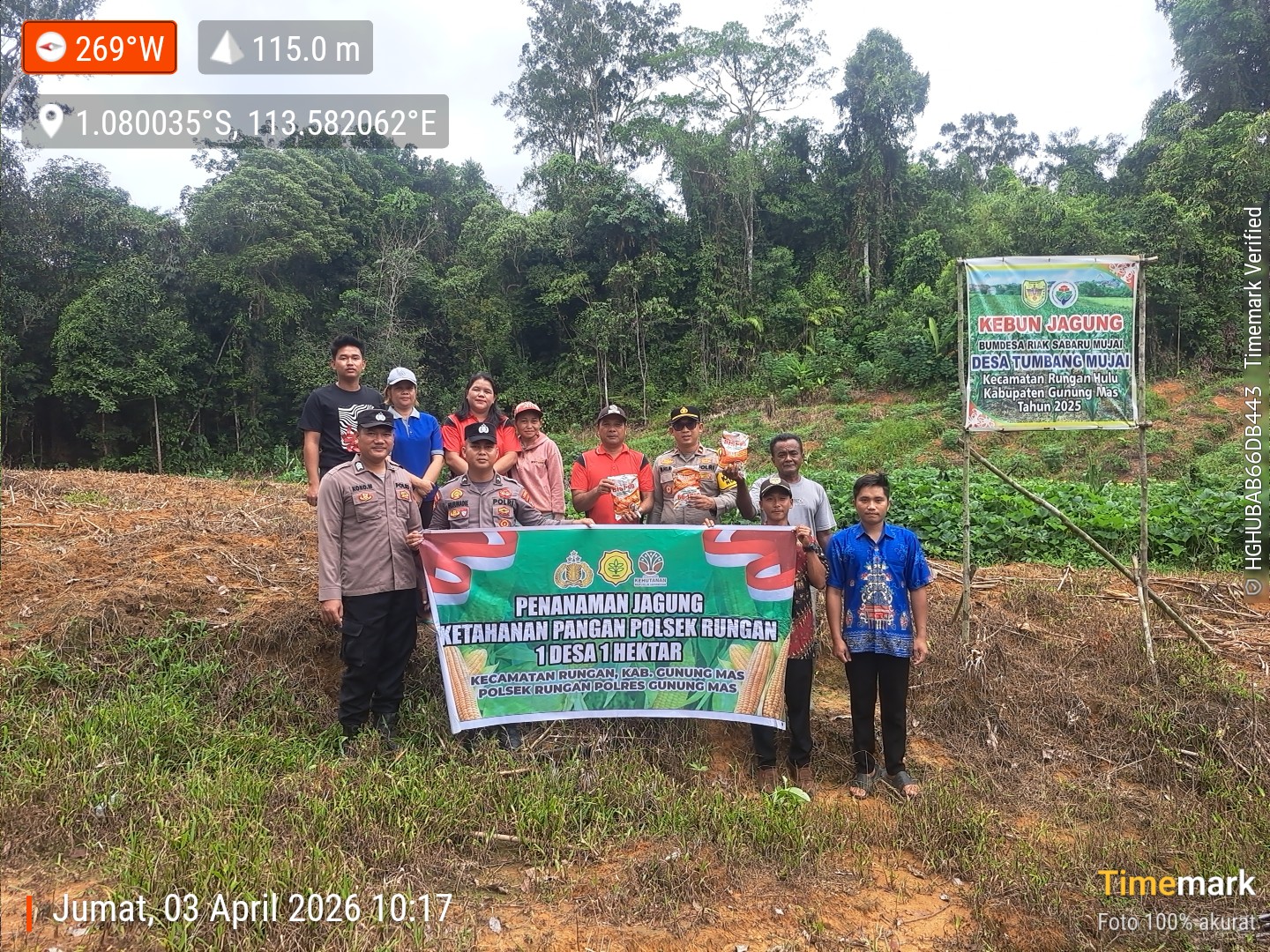 Sisikalimantan.com, Gunung Mas – Polsek Rungan jajaran Polres Gunung Mas bersama perangkat desa dan masyarakat melaksanakan penanaman jagung serentak di dua lokasi berbeda sebagai bentuk dukungan penuh terhadap program Asta Cita Presiden Republik Indonesia menuju swasembada pangan berkelanjutan, Jumat, 3 April 2026.