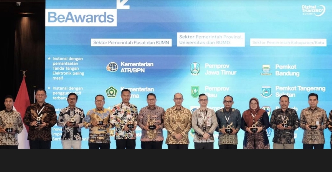 Sisikalimantan.com, Jakarta – Kementerian Agraria dan Tata Ruang/Badan Pertanahan Nasional (ATR/BPN) meraih penghargaan dalam ajang Be Award untuk “Instansi dengan Pemanfaatan Tanda Tangan Elektronik Paling Masif” Kategori Sektor Pemerintah Pusat dan BUMN, Kamis (20/11/2025), di Gedung Sasono Langen Budoyo, Taman Mini Indonesia Indah (TMII), Jakarta. Be Award sendiri merupakan bagian dari acara Digital Trust 360 Summit yang diselenggarakan oleh Badan Siber Sandi Negara Republik Indonesia (BSSN RI).