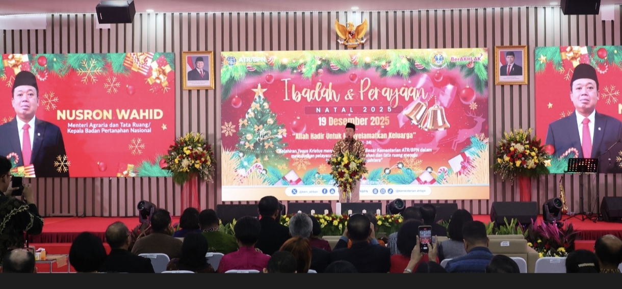 Sisikalimantan.com, Jakarta – Menteri Agraria dan Tata Ruang/Kepala Badan Pertanahan Nasional (ATR/BPN), Nusron Wahid, membuka kegiatan Ibadah dan Perayaan Natal Keluarga Besar Persekutuan Umat Kristiani Kementerian ATR/BPN, yang digelar di Aula Prona Kementerian ATR/BPN, Jakarta, Jumat, 19 Desember 2025.