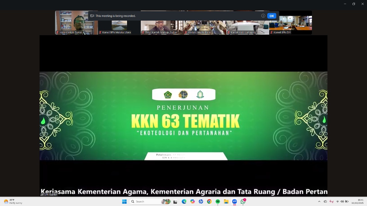 Sisikalimantan.com, Gunung Mas – Kepala Kantor Pertanahan Kabupaten Gunung Mas, Halilintar, mengikuti kegiatan zoom penerjunan mahasiswa Kuliah Kerja Nyata (KKN) Tematik pertanahan dan ekoteologi, Senin, 13 Oktober 2025.