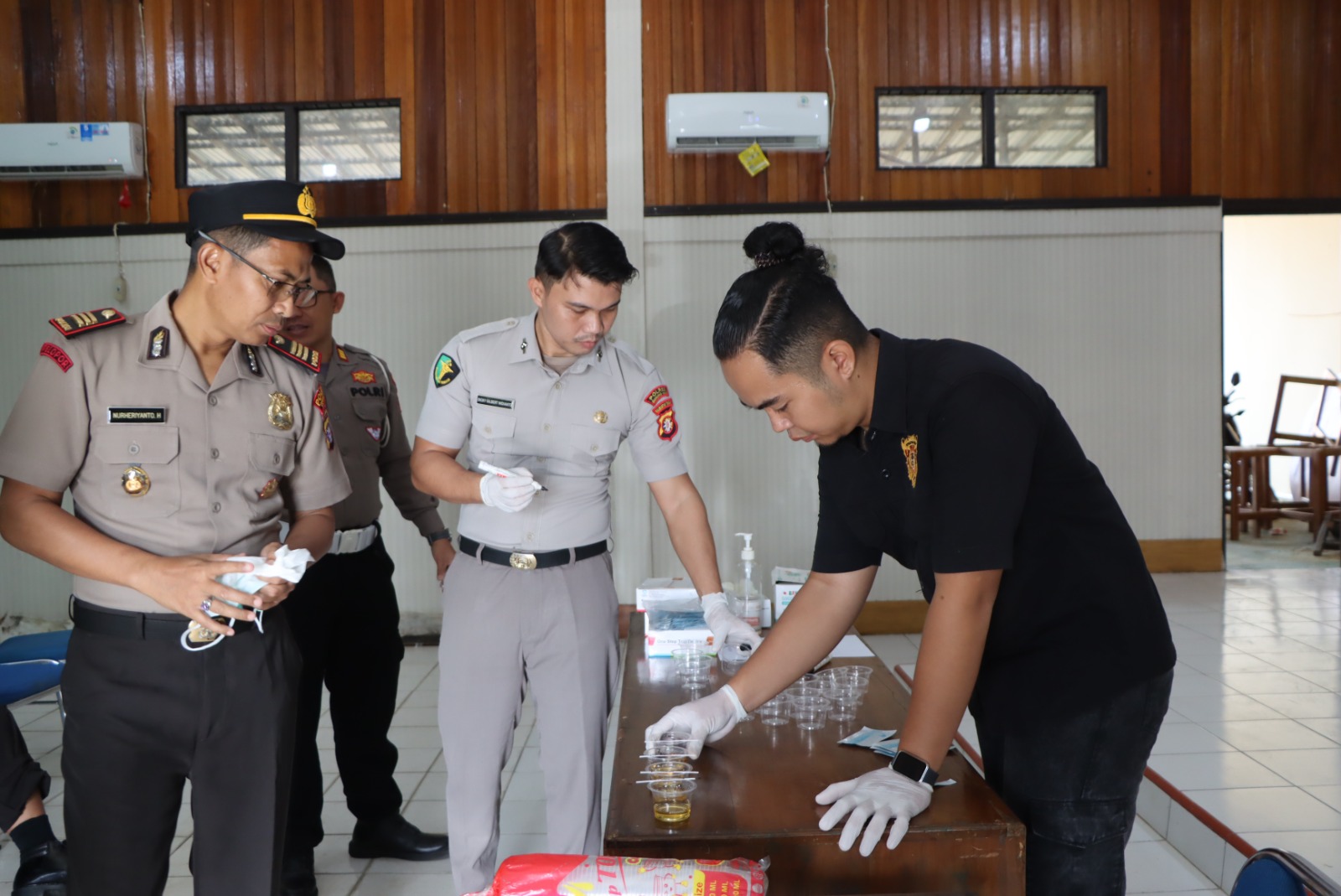 Ada yang menarik dalam kegiatan kali ini. Alih-alih hanya menyasar anggota lapangan, Kapolres Gunung Mas AKBP Heru Eko Wibowo, S.I.K., M.H., bersama Wakapolres Kompol Indras Purwoko, S.H., menjadi pihak pertama yang menyerahkan sampel urine untuk diperiksa.