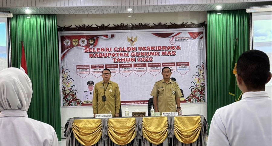 Sisikalimantan.com, Gunung Mas – Sekretaris Daerah (Sekda) Kabupaten Gunung Mas Richard membuka kegiatan seleksi calon Paskibraka kabupaten tahun 2026 yang dilaksanakan di aula Bapperida, Selasa, 14 April 2026.