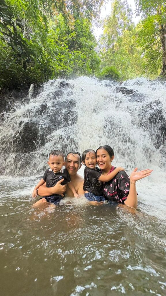 Ia mengajak keluarga besarnya menikmati suasana alam di Air Terjun Sahai yang terletak di Desa Tumbang Lapan Kecamatan Miri Manasa, Senin, 23 Maret 2026.
