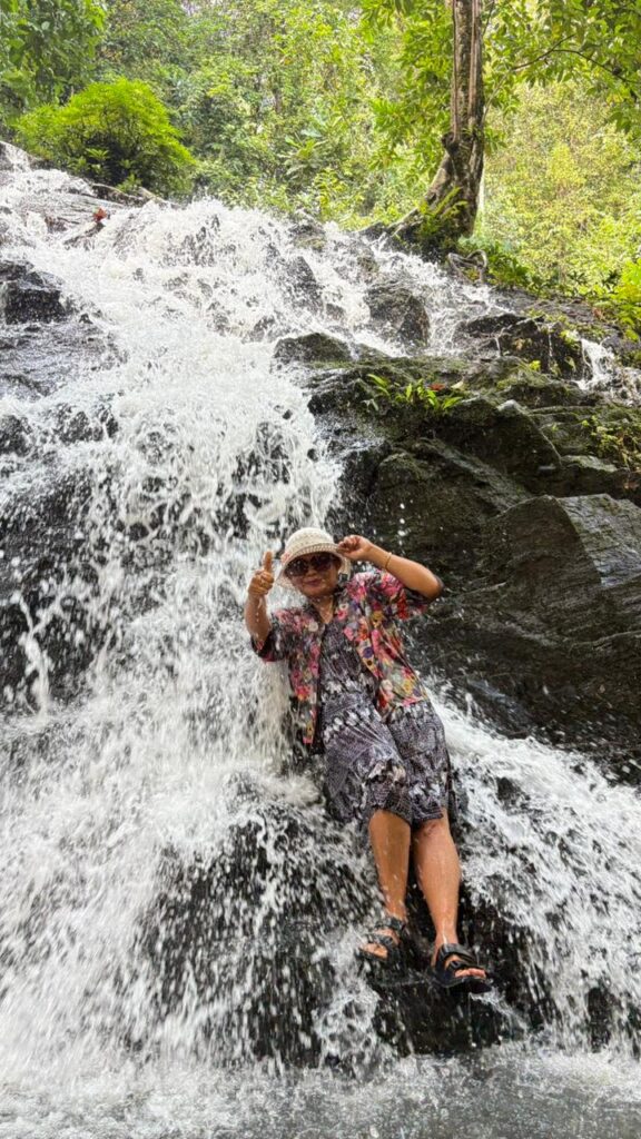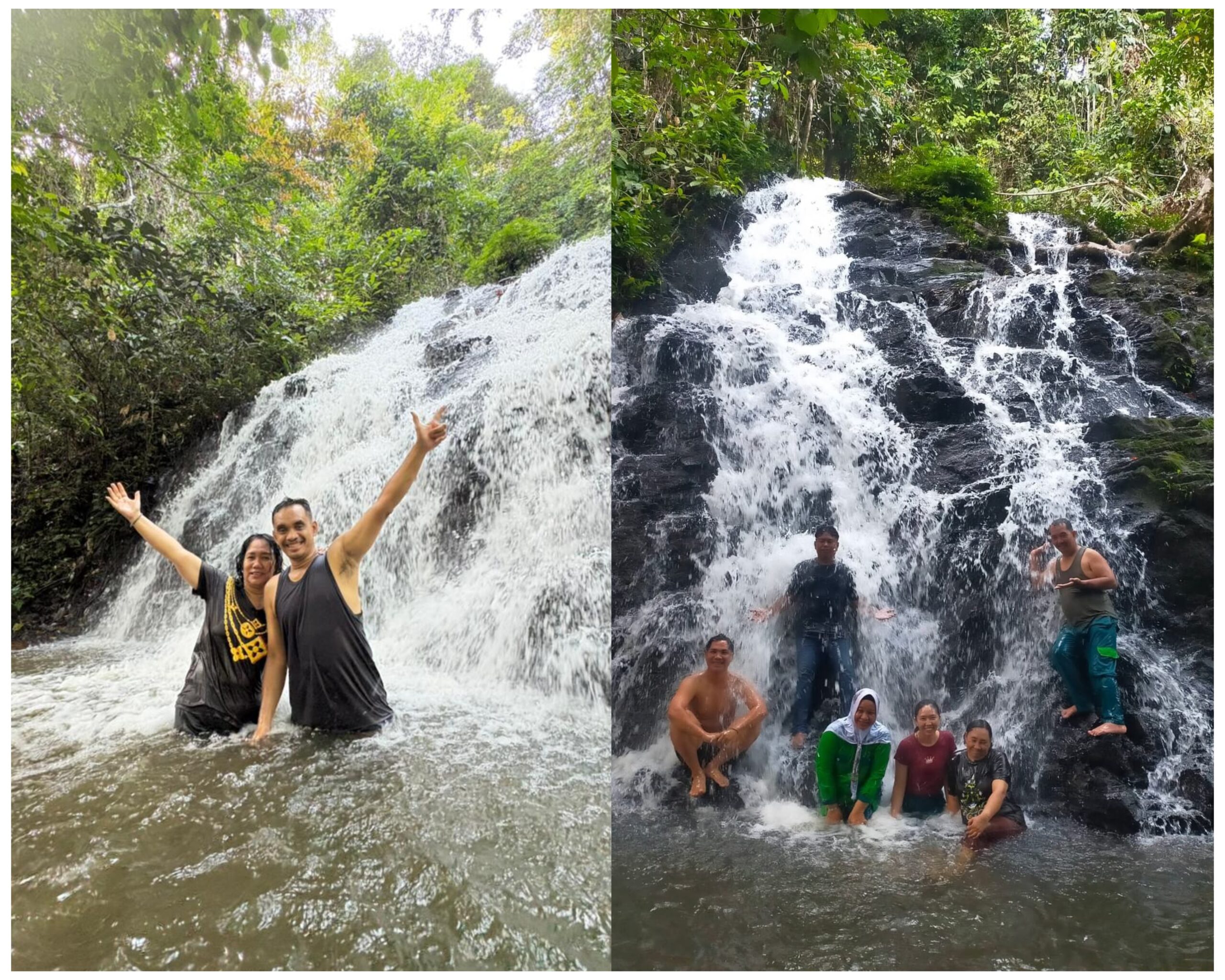 Selama di air terjun, keluarga besar Lily menikmati berbagai aktivitas, mulai dari makan bersama, bermain air, hingga berfoto di sekitar air terjun yang menjadi salah satu destinasi wisata alam di Kabupaten Gunung Mas.