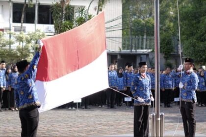 Situasi upacara peringatan HUT ke-4 Korpri di lingkungan Kementrian ATR/BPN. (Foto: ATR/BPN)...